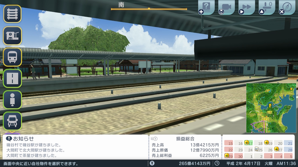 本シナリオでは鉄道の運行しかできないため、最終的な発展はおまかせとなる。よって、初手で必要な作業は済ませておきたい。